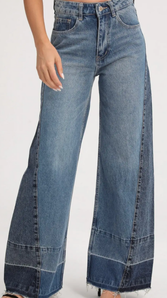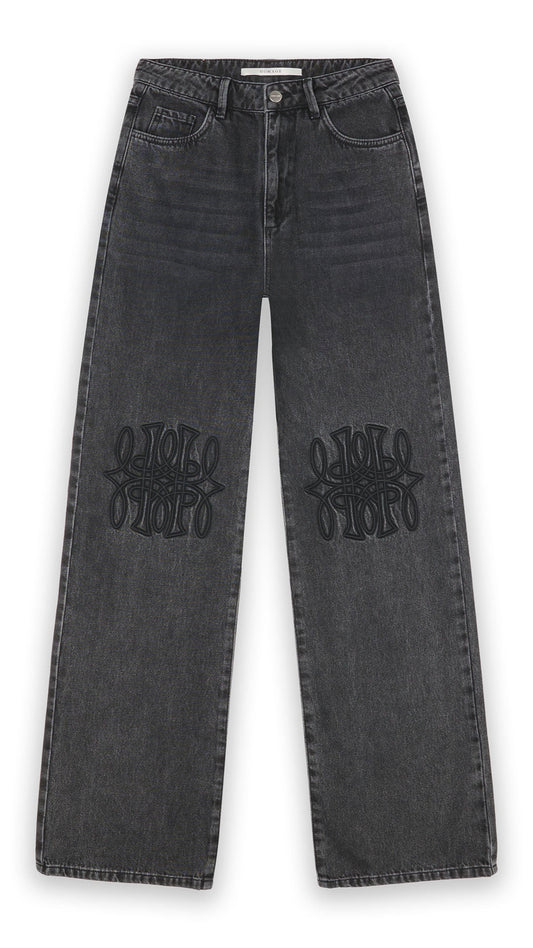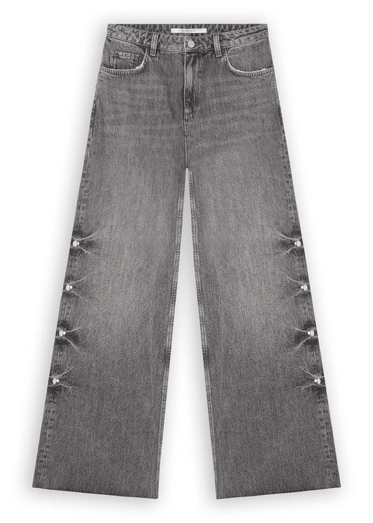 Homage - Mid Waist Wide Leg Jeans With Big Studs