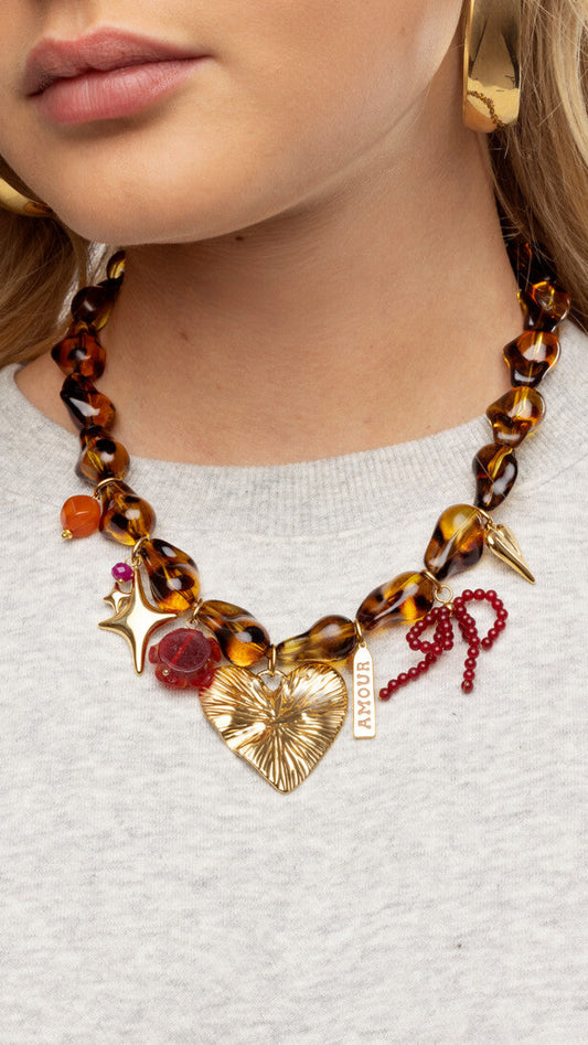 My jewellery - Statement ketting met imitatieparels en hartjes