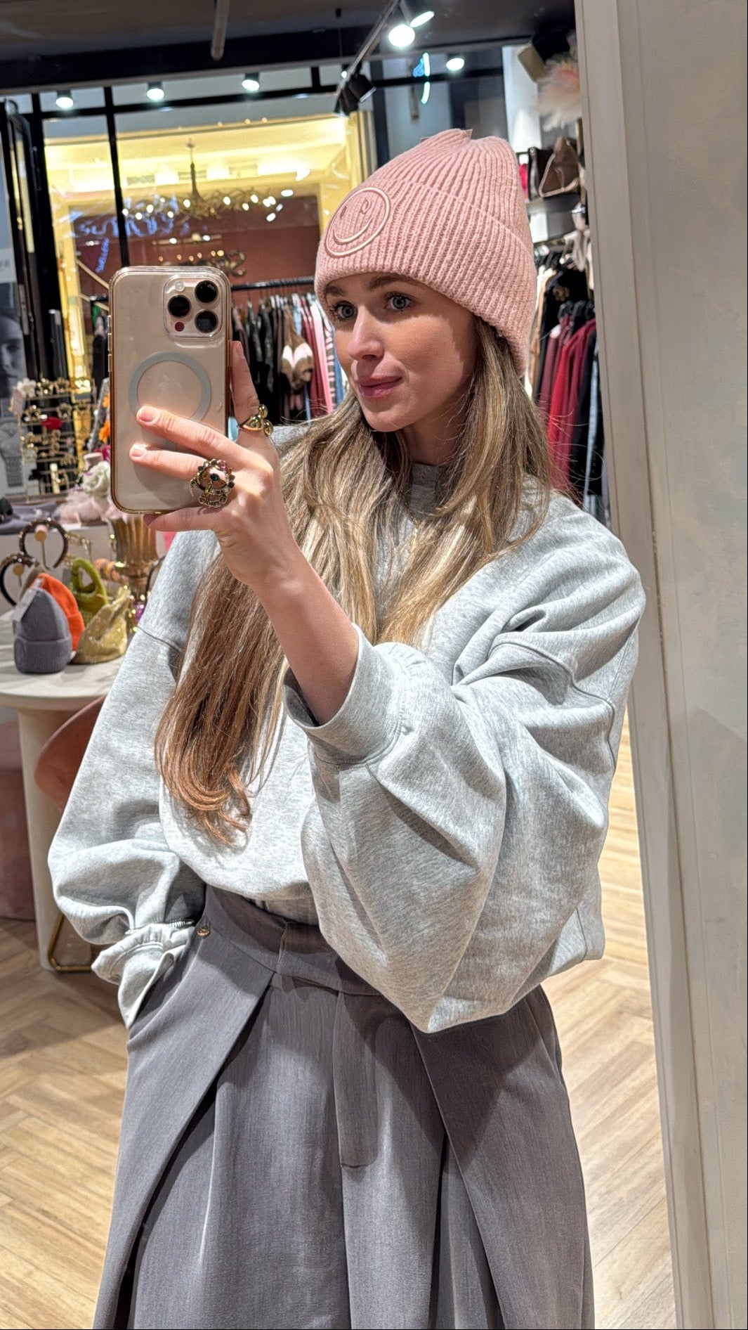 Beanie smiley - licht roze