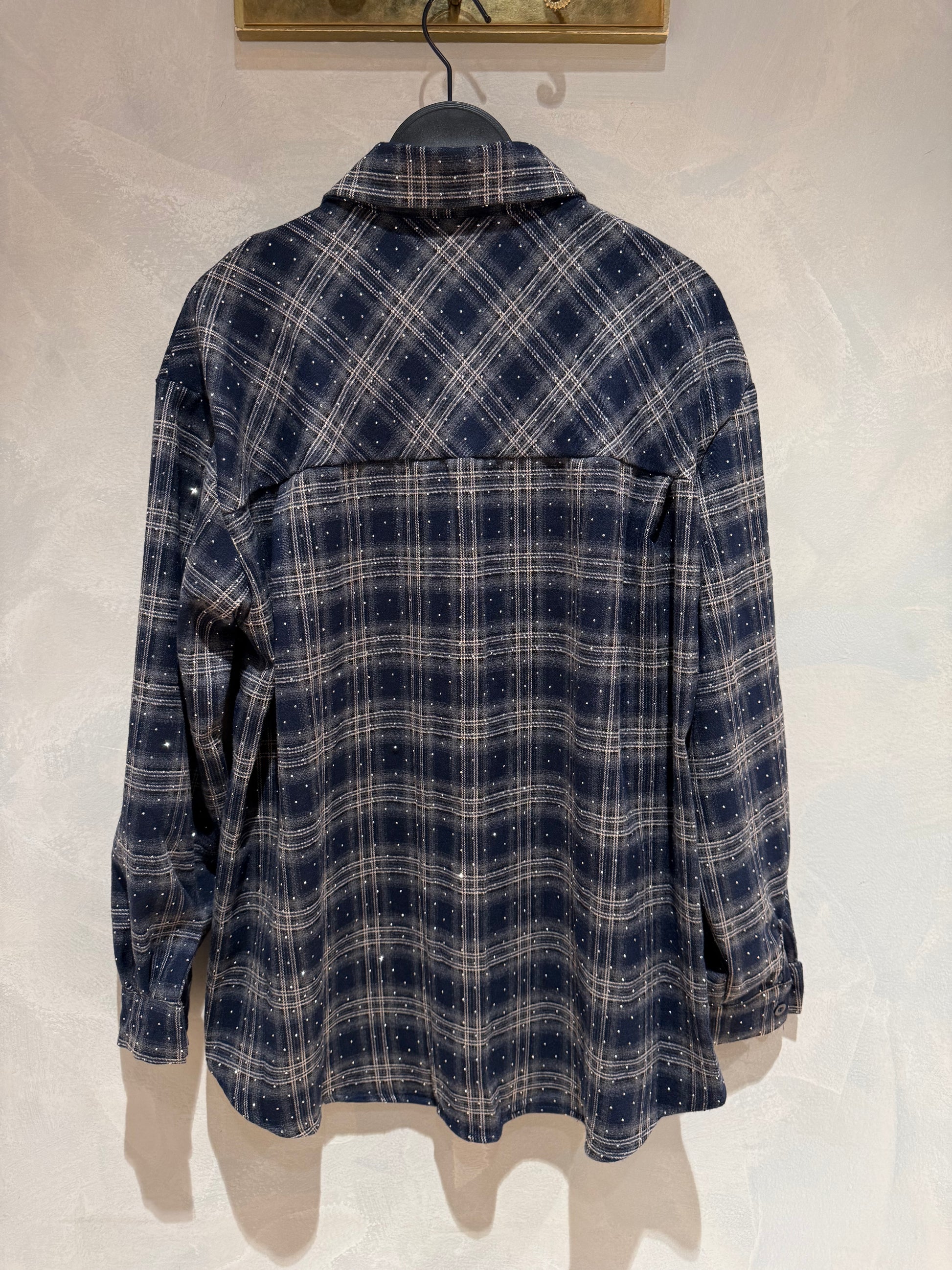 Ruit print blouse met strass stenen.