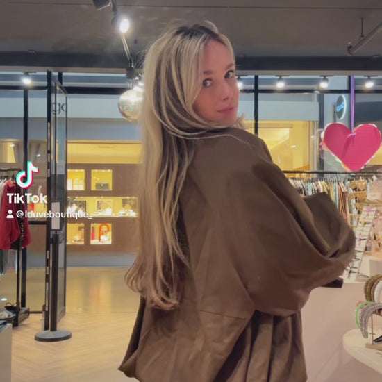 Dit oversized jasje in een mooie bruin kleur heeft een unieke balloon fit en volumineuze mouwen. Perfect voor een edgy look.