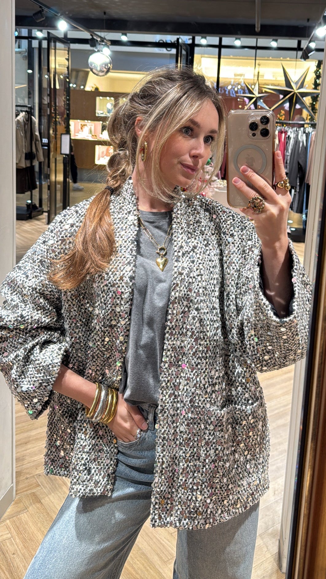 Dit prachtige jasje is precies wat jouw feestlook nodig heeft.